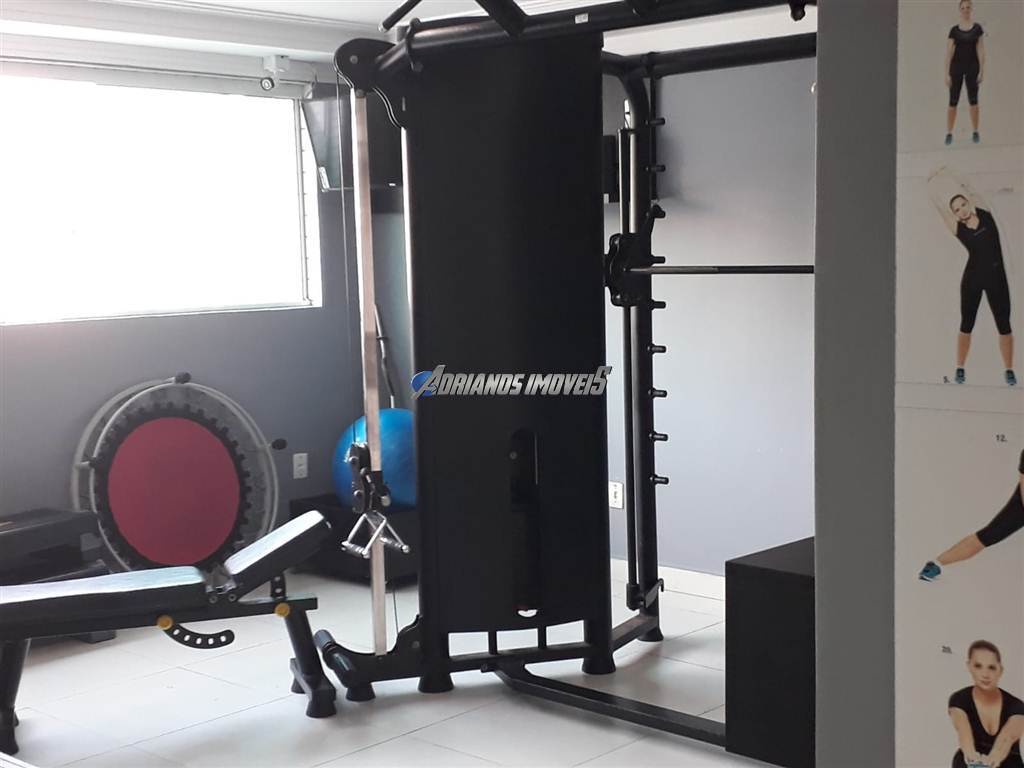 Prédio com piscina, academia, salão de festas.