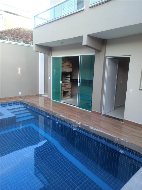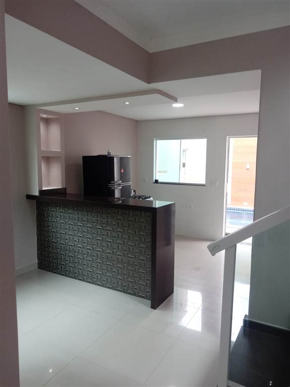 Sobrado com 03 dormitorios , 01 suite, sala, cozinha americana, wc, lavabo, piscina, churrasqueira, 300 metros da praia no bairro do Caicara - Praia Grande. Aceita financiamento bancario. Sobrado de alto padrao no CENTRO do Caicara pertinho do MAR e ao lado de todo comercio! Material de 1* primeira qualidade com fino acabamento: Pisos e revestimentos e pastilhas das marcas: CEUSA, PORTOBELLO, BIANCOGRESS e ITAGRESS. Borda da piscina, pias, soleiras, peitoris de janelas, sacadas, escadas e churrasqueira revestidas em granito MARROM ABSOLUTO e etc. DESCRITIVO DO IMOVEL; PARTE EXTERNA Piscina com 18 m2 (6x3), revestida com pastilhas da PORTOBELLO, 10 bicos de hidromassagem, Luzes de LED, Cascata, Prainha, 02 (duas) bombas. Area gourmet com churrasqueira e pia em granito MARROM ABSOLUTO integrada com a piscina. Chuveiro no corredor, Garagem para 04 (Quatro) automoveis. Portao da garagem em aluminio com 02 (dois) motores, medindo: 6,35 X 2,49 cm, Portao social em aluminio 2,49 X 0,90 cm. Revestimento frontal amadeirado da marca CEUSA. Corredor social com 1.10 cm de largura com CHUVEIRO, Corredor e Jardinagem com 2.05 cm de largura e luzes no gramado, Muros de 03 metros de ALTURA, molduras de concreto em volta e arandelas na parte da piscina. Luzes na sacada e entrada da porta com acendimento por aproximacao. Duas caixas D?agua com capacidade de 1,5 litros. Telhado escondido, Area construida: 249 m2 Area total: 205 m2. PARTE INTERNA - PISO TERREO Sala de Estar com painel decorativo para TV e demais aparelhos eletronicos, sanca e forros com Luzes de LED e jardim de inverno, Sala de Jantar com teto rebaixado em gesso com NICHO decorativo e luzes de LED, Cozinha americana com balcao decorativo e pia, ambos de granito MARROM ABSOLUTO e revestimento em 3D, Area de servicos com tanque de loucas e revestimentos de 3D, Escada revestida em MARROM ABSOLUTO e vidros temperados, PARTE INTERNA - PISO SUPERIOR; 03 dormitorios, sendo 01 suites muito GRANDE com closet, Banheiro Social, Vidro temperado em frente a escada com 2,40 X 1,20 cm. Portas balcoes e sacadas em todos os dormitorios. Molduras de concreto nas sacadas e em volta de toda a casa. Valor IPTU R$ 549,00 mensais. Valor R$ 1.1k. Estudo proposta para pagamento a vista e avalio imovel e veiculo na negociacao!