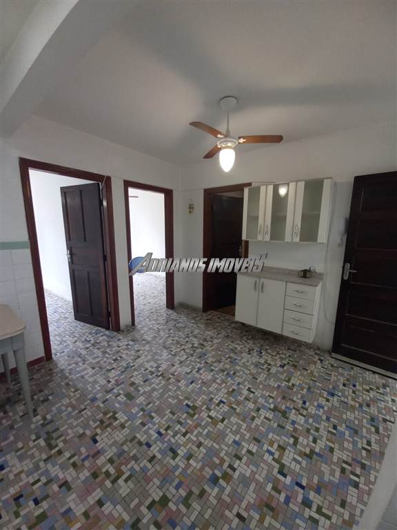 Apartamento 2 dormitórios, cozinha e sala integrados, wc, área de serviço, garagem coletiva, 100 m do Mar - Portaria 24 hs. - Guilhermina - Praia Grande - SP.